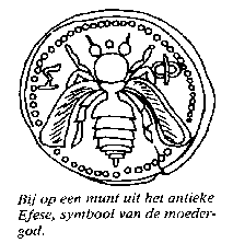 Maar weinig dieren spelenin de symboliek zo'n grote rol als dit statenvormende insekt. In Egypte werden al in 2600 v.C. bijen gehouden. De bij was als hiëroglyfe het symbool van het Nederegyptische koningschap. Ook in China is het houden van bijen zeer oud. Daar was de bij niet zozeer symbool voor ijver als wel een beeld voor de jongeminnaar die van meisjesbloesems snoept. Ook in Chinesesprookjes helpen bijen, net als in Europa, bij het vinden van de ware bruid. In het avondland geldt de bij als symbool voor de ziel (vergelijk Nijhoffs 'Lied van de dwaze bijen'). Als een bij de mond van een dode binnenvliegt wordt deze weer levend. 'Bijenweg' was de Germaanse omschrijving voor de lucht, vol met de zielen van de doden. In het Middellandse Zeegebied heersten veel curieuze voorstellingen over het leven van de bijen; ze zouden geslachtsloos zijn en uit rottende lijken van dieren ontstaan, geen bloed hebben en niet ademen. Antropomorf werden de bijen dapper, kuis,vlijtig, schoon, eendrachtig en artistiek begaafd genoemd. Priesters en priesteressen bij de mysteriën van Eleusis heetten 'bijen'. Daar de winterslaap van de bijen met de dood werd gelijk gesteld, golden ze ook als beeld voor wederopstanding. In de christelijke beelden wereld gold de onvermoeibaarheid van de bijen bij het werk voor hun gemeenschap als voorbeeldig. Sint Ambrosius vergeleek de kerk met een bijenkorf.