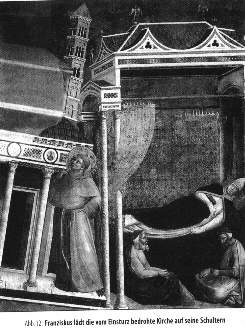 Abb 12: Franziskus ladt die vom Einsturz bedrohte Kirche auf seine Schultern