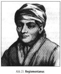 Wenden wir uns einem weiteren Universalgenie dieser so aufregenden übergangszeit zu, dessen mathematische Tabellen und astronomische Arbeiten erst die Voraussetzungen schaffen, Entdeckungsreisen zu fernen Kontinenten zu unternehmen Es ist Johannes Regiomontanus (1436 - 1476), der mit seinem Werk den Entwicklungsprozeß Europas wesentlich beschleunigen hilft.