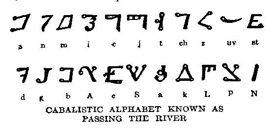 A mystical alphabet said to have been used by the Cabalists. These characters, with certain explanations, become the subject of consideration with Brethren of the Fifteenth Degree, Ancient and Accepted Scottish Rite. The accompanying are the characters.