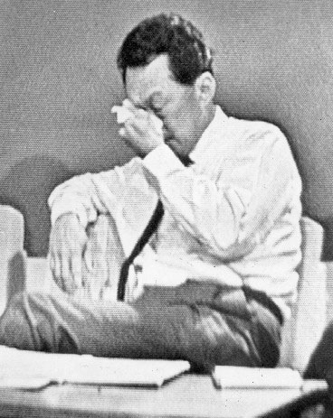 Surveying the opposition before battle is joined. With Dr. Goh Keng Swee, the Finance Minister.