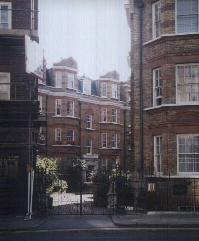 The house was part of Orbell's Buildings on the west side of Kensington Church Street. These buildings were demolished in 1894 and Bullingham Mansions built on the site which survive to the present day (see photograph.) This street goes northwest from Kensington High Street, a little to the east of High Street Kensington underground station, on the Circle and District lines. The Mansions are built around two courtyards, one leading off Kensington Church Street (as shown) and the other behind this, off Pitt Street. At the time of their demolition, Orbell's Buildings (in fact a single structure) were divided into Newton House and Bullingham House, and surrounded by a substantial garden. There is no good evidence indicating where Newton lived, but traditionally (and confusingly) Bullingham House has had a stronger claim. This part of the building probably stood where the courtyard in the photograph is now. Newton told Stukeley the falling apple story at Kensington on 15th April 1726. In 1727, Newton succumbed to his fatal illness, a bladder stone, and died in his Kensington home after two weeks of great suffering on 20th March. Conduitt recorded that the pain of his wife's uncle and hero ``rose to such a height that the bed under him, and the very room shook with his agonys, to the wonder of those that were present. Such a struggle had his great soul to quit its earthly tabernacle!'' Conduitt's hyperbole aside, few would question Newton's genius or fail to spare a thought for so cruel a death.