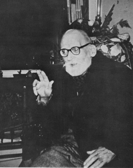 "I was facinated by one of the people. He was standing right in the middle behind the table at the end of which forms the closed part of the horse shoe (of the table). He was directly opposite me. I did not wish to appear impolite; however, as if attracted by a magnetic force, I was conscious of the fact that I had once more turned towards him and caught his eye. He would have attracted attention anywhere. He was tall, of handsome stature, neat, dressed in classic fashion. He wore a white, neatly-trimmed beard, which gave him a look of discreet distinction (...) From where I was, I could not tell the colour of his eyes. To me, they looked like sparkling precious stones, like points of light, to describe them perhaps more accurately.